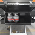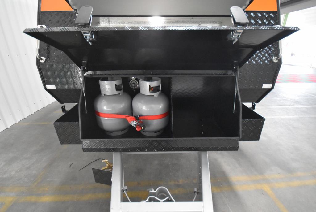 The composite walls & composite front panel accompany the fibreglass roof for the 196-1R. Also boasting 2x fresh water tanks, 1x grey water tank, 2x 9kg gas bottles inside toolbox.