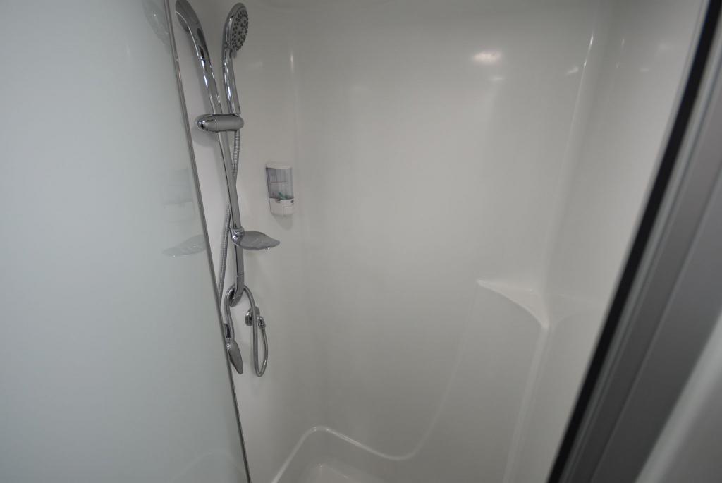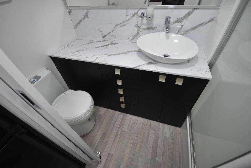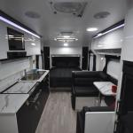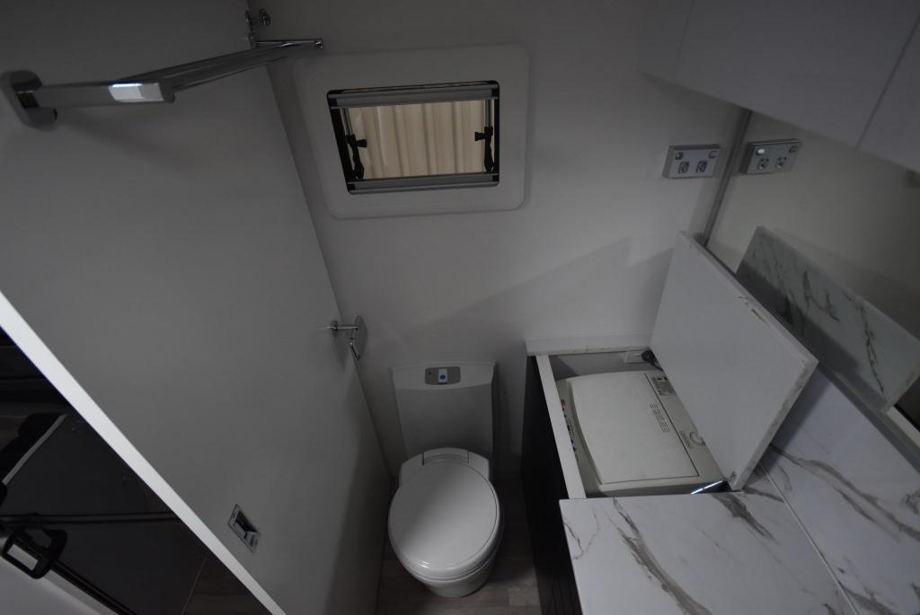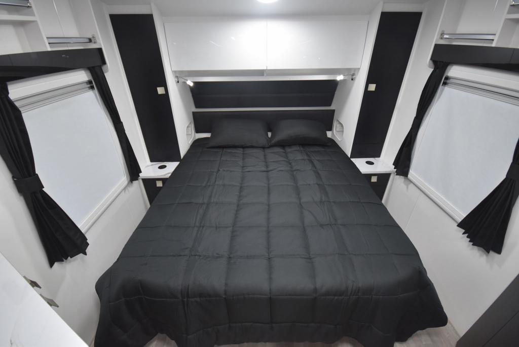 Entering into our Terra Sportz using your keyless entry fob, you will find the master suite boasting a Queen Size Bed with convenient wireless phone chargers, reading lights & storage cupboards surrounding the bed.