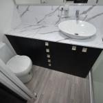 The ensuite holding a separate toilet & shower, large ceramic basin & a washing machine.