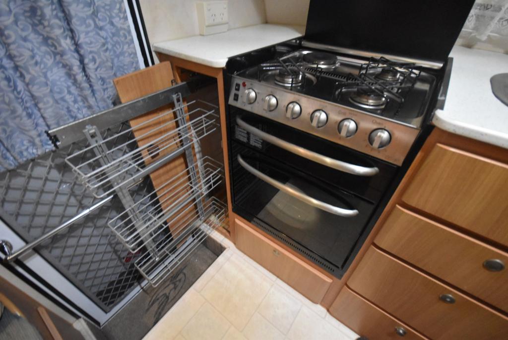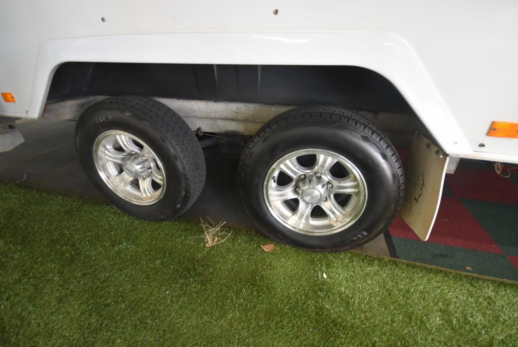 A separate toilet & shower at the rear of the caravan, our Sterling also has a washing machine, reverse cycle air-con, pole carrier, 120w of solar.