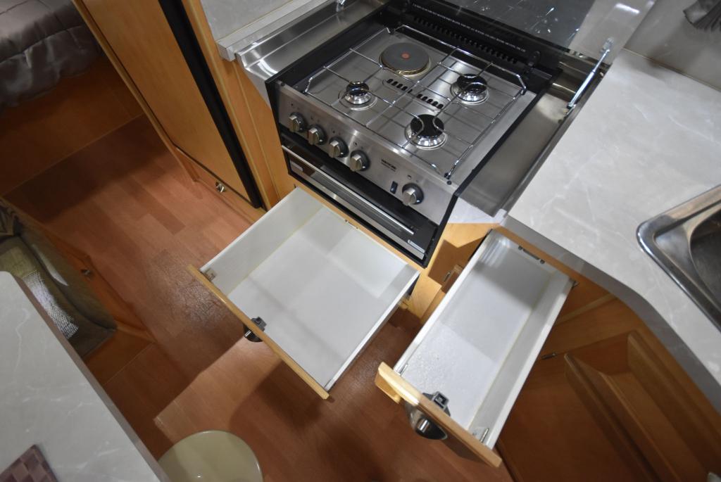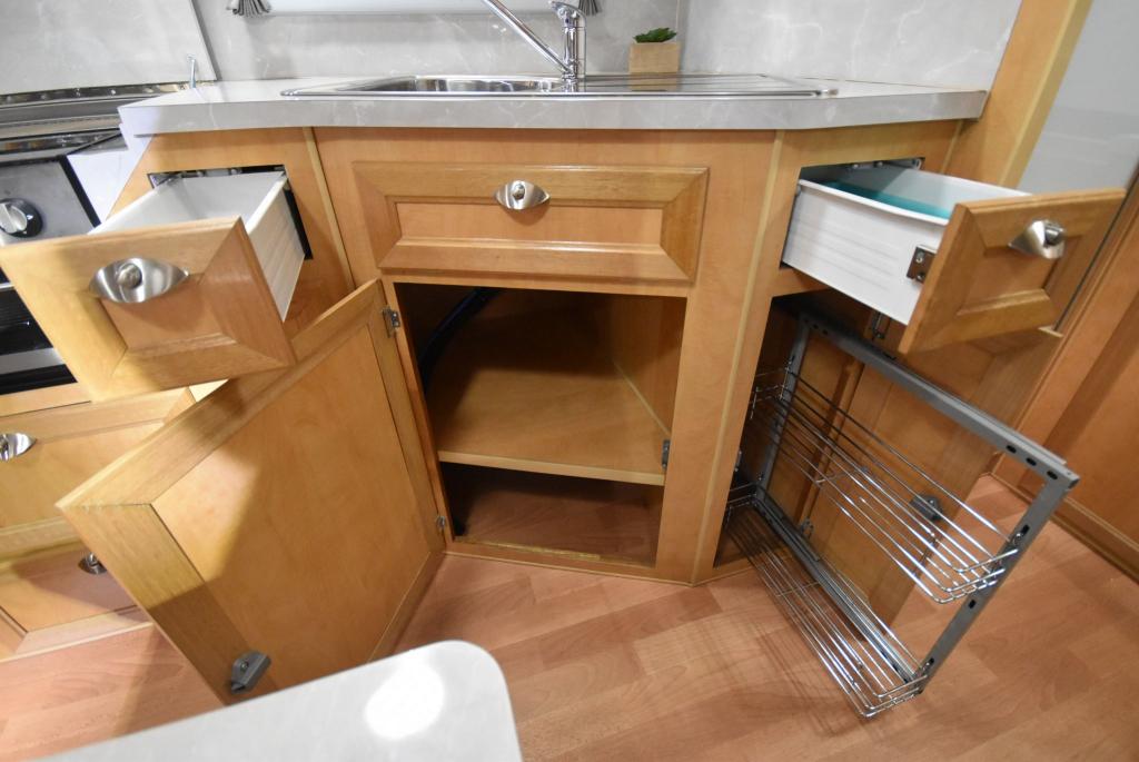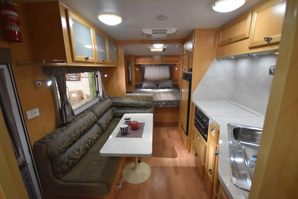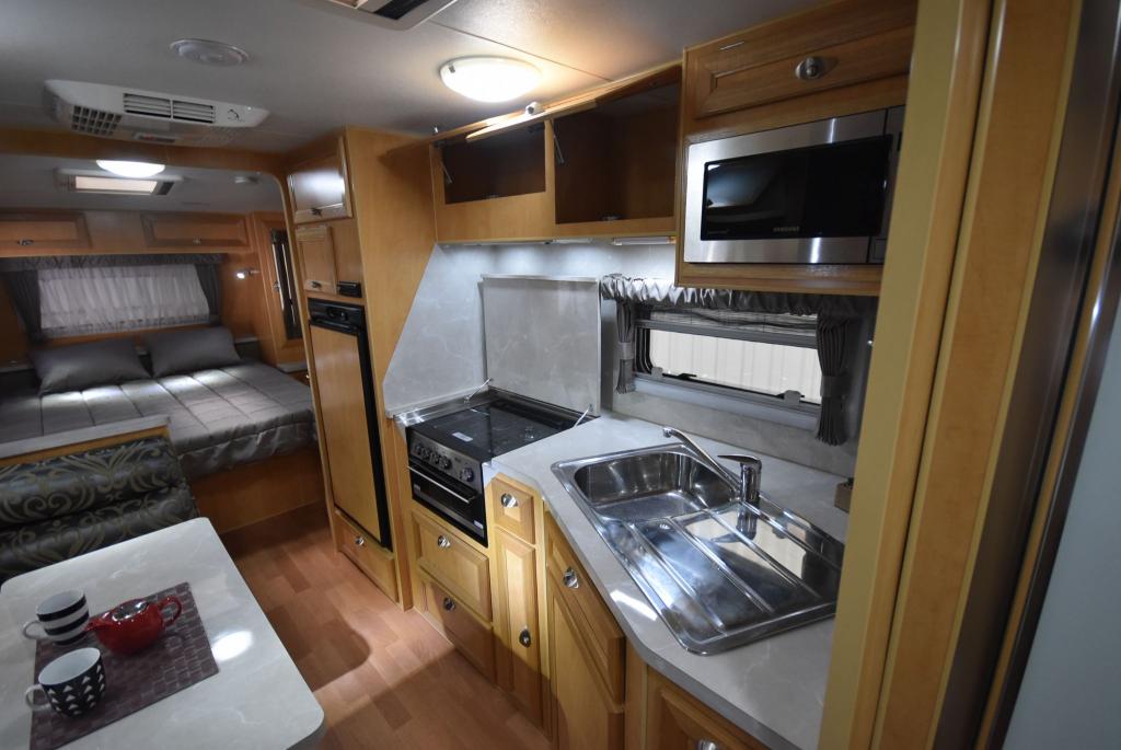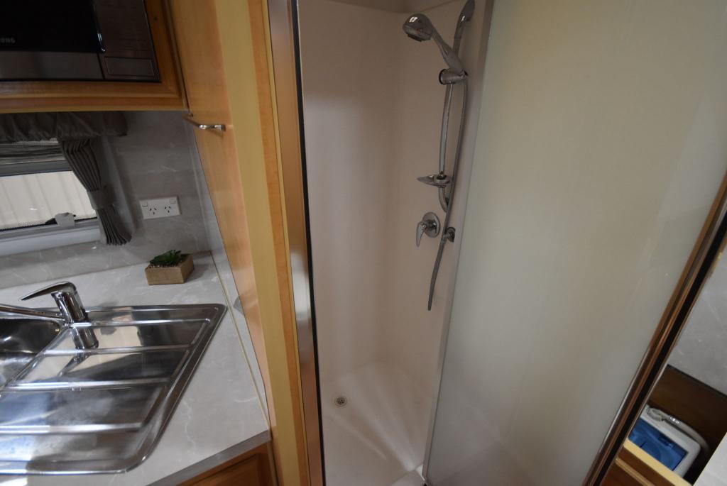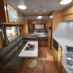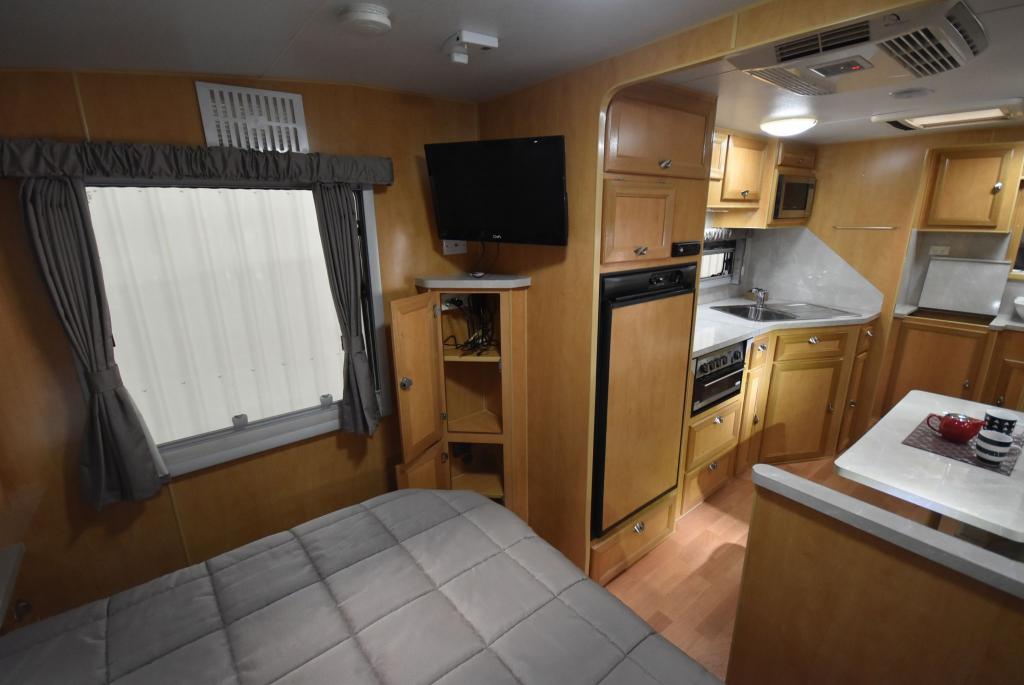 In the kitchen you have ample cupboard space to store all your goods including a pull out pantry, 150ltr 3-way fridge, and gas/elec stove top with a grill.